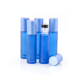 10ml szklana niebieska butelka z efektem szronu z nasadką z kulką ze stali nierdzewnej i niebieską metalową nakrętką (5szt.)