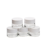 Zawartość: 5 x szklanych słoików i biała plastikowa nakrętka.
