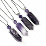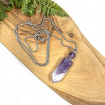 Ten oszałamiający naszyjnik – fiolka wykonana z kamienia szlachetnego Ametystu to fantastyczny sposób na połączenie mocy kamieni szlachetnych i olejków eterycznych w codziennej praktyce!