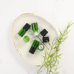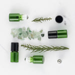 Zawartość: 5 x 2ml zielonych butelek typu rollon, z nasadkami z kulką ze stali nierdzewnej i czarnymi nakrętkami.