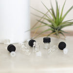 W zestawie: 1ml Fiolki z przezroczystego szkła, końcówka z zakraplaczem i czarne nakrętki - 24 szt.