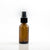 Butelka z bursztynowego szkła o pojemności 30ml jest wyposażona w czarną głowicę rozpylającą z pompką i przezroczystą plastikową nakrętkę dla ochrony nasadki.
