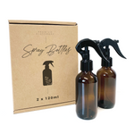Butelki z nakrętką z rozpylaczem spray mogą pomieścić 120ml płynu. Idealne nadają się do samodzielnego przygotowania domowych środków czystości. Ale nie tylko, można użyć ich jako spray do zwierząt lub wykorzystać na spray do włosów. Butelki te są pięknie zapakowane i zawierają 2 naklejki winylowe, którymi można ozdobić butelki. W środku znajdziecie również arkusz z przepisami zawierający sugerowane zastosowania.