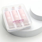 Zawartość: 3 x 10 ml butelka szklana różowa z logo dōTERRA i sercem, z nasadką z kulką z różowego kwarcu.