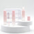 Zestaw trzech różowych, szklanych, butelek w stylu ombre, ozdobionych logo dōTERRA oraz symbolem serca są dodatkowo wyposażone w nasadkę z kulką z różowego kwarcu.