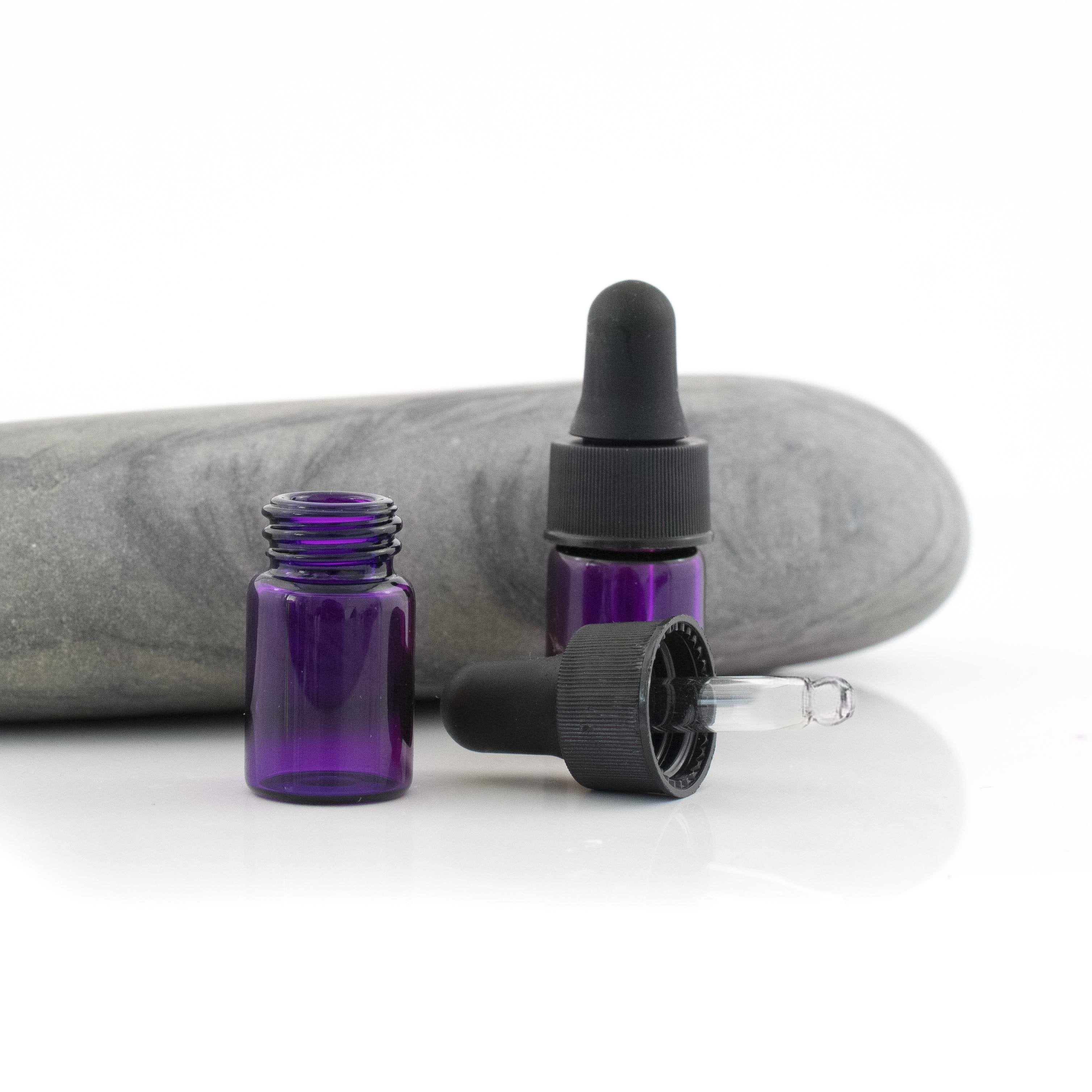 2ml Fioletowa szklana butelka z szklanym zakraplaczem (pipetą) 5szt.