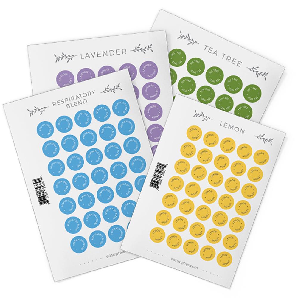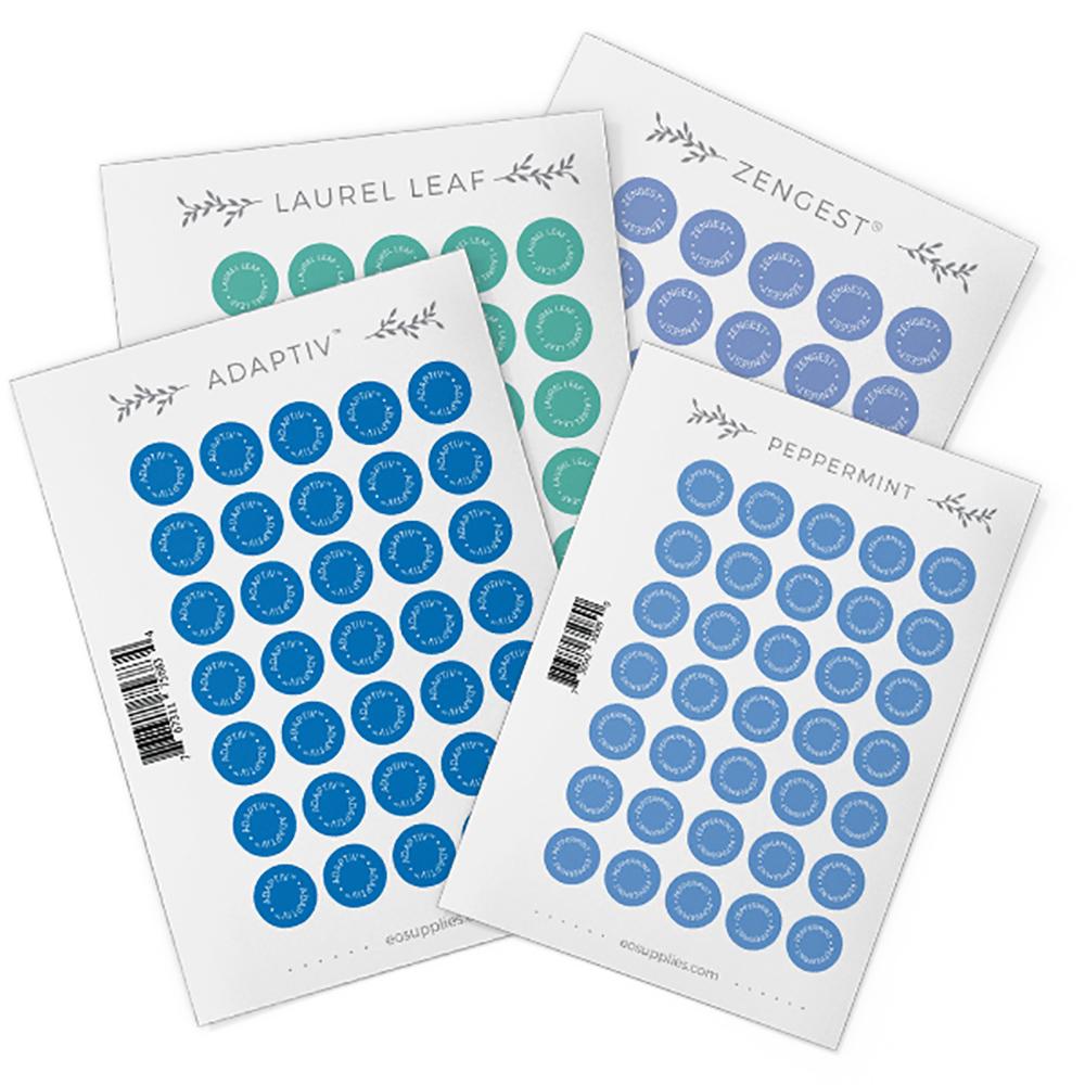Wymieniaj arkusze naklejek w miarę ich używania, aby nie było więcej odpadów – kup zastępcze naklejki na zakrętki tutaj. Każda etykieta jest oznaczona kolorem pasującym do Twojego ulubionego olejku eterycznego lub mieszanki dōTERRA®.
