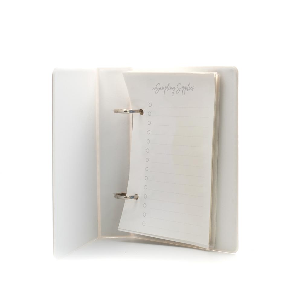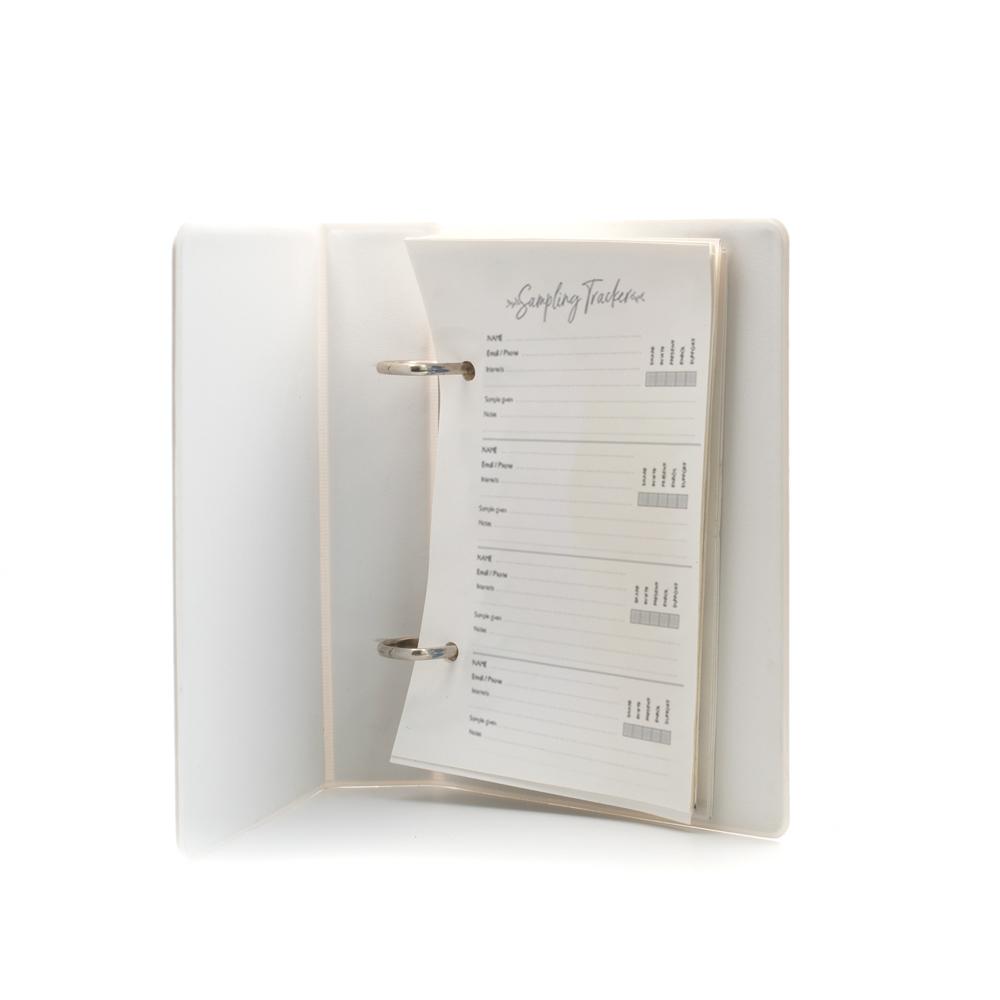 Dzięki przegródkom Pojedyncze Olejki i Mieszanki Olejków w tym folderze wyszukiwanie i porządkowanie etykiet nigdy nie było prostsze! Ponadto ten folder jest doskonałym narzędziem biznesowym, ponieważ zawiera narzędzie do śledzenia rozdawanych próbek oraz robienia notatek dotyczących danych osobowych i zainteresowań osób, które spotykasz każdego dnia! Na końcu folderu znajdziesz również sekcję Próbki, w której będziesz mógł zrobić notatki dotyczące materiałów, które chcesz/musisz zamówić w następnej kolejności. W ten sposób, gdy przeglądasz nasz sklep, wiesz dokładnie, czego potrzebujesz.