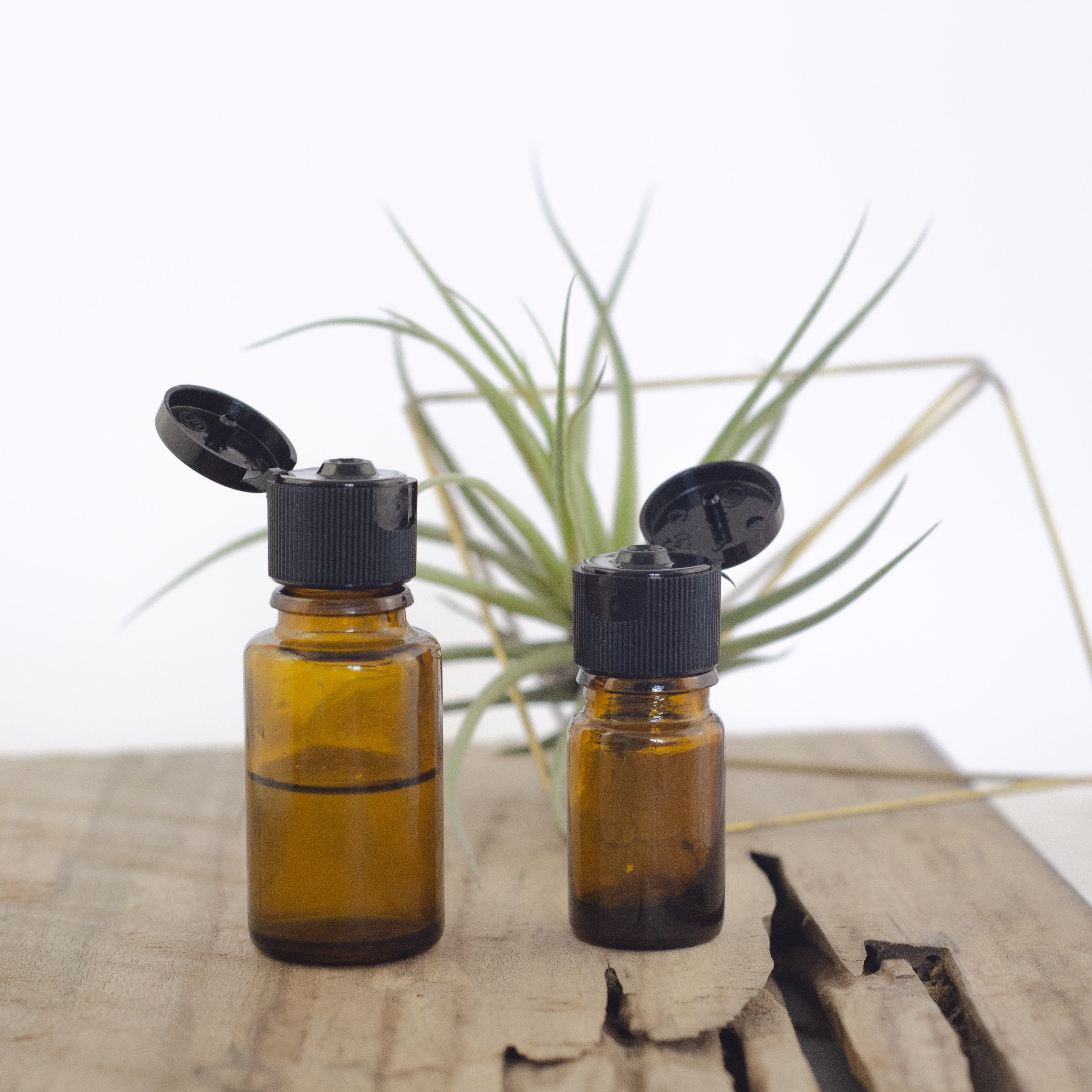 Zdejmij reduktor i nakrętkę z butelki olejku eterycznego i zastąp je nakrętkami typu flip top.