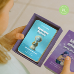Każda karta wspiera konkretną emocję – od radości i zabawy po strach, frustrację i smutek – zawiera jasne definicje, pomocne synonimy, pary olejków i proste działania wspierające.